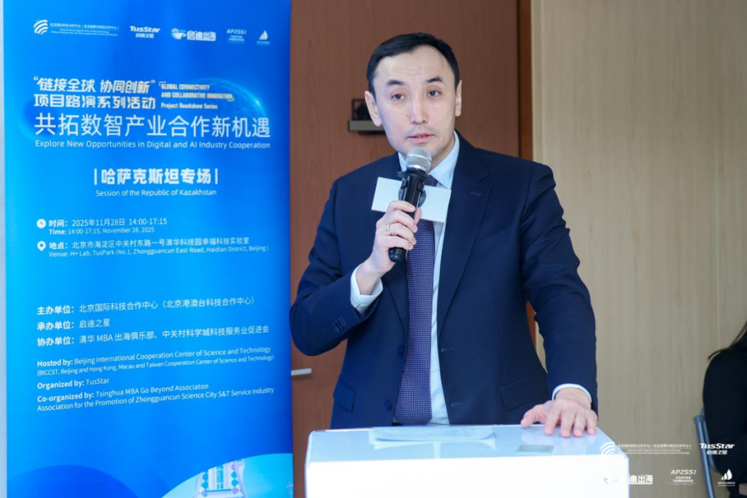 哈萨克斯坦驻华使馆公使衔参赞阿满泰•华内实在致辞中首先对活动主办方的精心组织表示诚挚感谢。他介绍,中哈建交30年来,中哈贸易额10个月增至398亿美元,增幅21%,创历史峰值。哈萨克斯坦已将AI、机器人、大数据写入国家发展战略,在阿拉木图、努尔苏丹设立中国AI虚拟中心与高科技园区,哈方期待借北京科创引擎,共同打造中亚最大跨境数据中心与算力枢纽,共享1700亿美元“光明之路”基建与数字丝路红利,共绘下一个黄金30年蓝图。